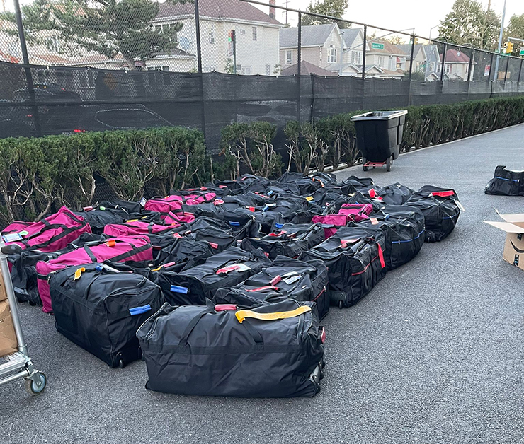 Last Tuesday, October 17, Divrei Chizuk spearheaded the Queens Gear Drive at Bais Yaakov of Queens, where they collected over 100 duffel bags worth of men's undergarments, towels, hygienic goods, baby powder, protein bars, foldable mattresses, and tactical water bags.