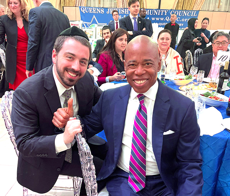 In welcoming Mayor Eric Adams to the podium, Nussbaum praised the mayor’s dedicated staff, and acknowledged the negativity sadly clouding the mayor for speaking strongly on behalf of Israel and Jews worldwide. Menashe Shapiro, Deputy Chief of Staff and Senior Advisor to the Mayor, paid tribute to the life and legacy of Nussbaum, upon whom the advocacy of the Queens Jewish community has been built. “Having grown up in Queens, the name Michael Nussbaum has been synonymous with advocacy, the ability of the Jewish community to be heard, and the organization has grown under his leadership.” Shapiro reflected that the upcoming Queens Boro Hall Holocaust Memorial, one of Nussbaum’s endeavors, is more important now than ever. “The legacy of the Holocaust of 80 years ago resonates so much more deeply with all of us here today. That is going to be the enduring lasting contribution not just to the Queens community, but to the Jewish community throughout New York City, where everybody will come to Queens and see what happens when savagery and inhumanity goes unchecked and unrecognized.”