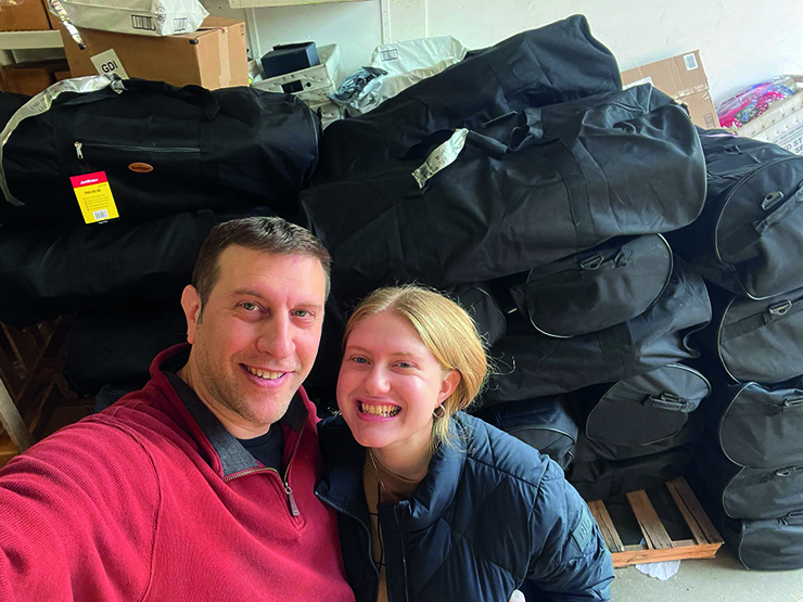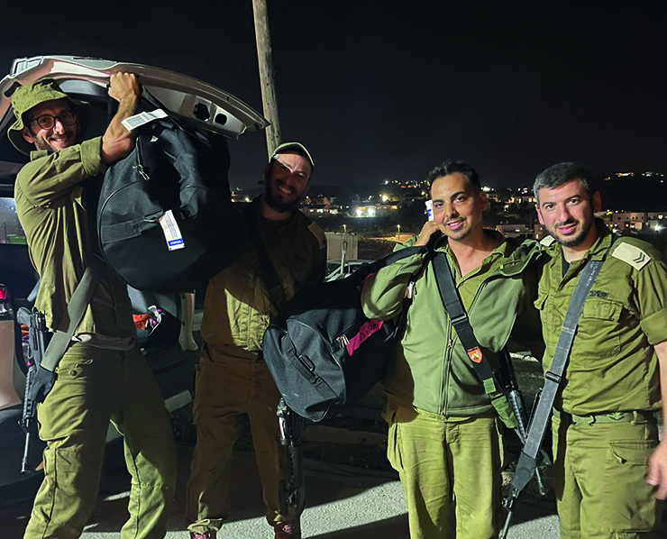 In its infancy, the program had its own logistical hiccup, compelling Yakir and Danny Gerber, a friend from the Five Towns, to assemble and transport the boots to JFK, where they stayed until well into the dead of the night seeking passengers willing to accept the luggage. Danny and his wife Jenny were formative sponsors and continue to volunteer extensively. Rabbi Shlomo Nisanov, rav of Kehilat Sephardim of Ahavat Achim, took on the responsibility of transporting ten duffels, becoming one of the first travelers early on to assist the program. “We had a wonderfully successful day getting 45 duffel bags on a single flight from JFK,” read a volunteer’s SMS. “We have 12 more going on the late-night flight. In total, that is over 3,000 boots sent to Israel. The boots are $90 a pair (all in), and today alone, we will send 627 boots. That is $53,295!”