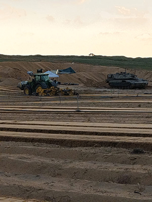 By noontime, ambulances with injured soldiers and civilian fighters sought medical assistance in Naveh, legitimizing concerns of the attack’s extent. With the sole roadway to hospital access still a one-hour trip, and blocked by terrorist activity, the Naveh community morphed their beis medrash into a makeshift incident command center, triaging incoming patients with the miniscule supplies available. Based in a caravan, these efforts were quite risky, as the structure, while sufficient to house t’filah in a serene atmosphere, was quite perilous with barely a wall separating those inside from the lurking horror. Staffed by two resident doctors and a handful of nurses, the well-positioned moshav provided lifesaving efforts into the following day when medivacs were able to land in the moshav and transport the injured to Soroka Medical Center. Deceased from nearby towns were also cared for in this center. With little information, Naveh’s populace was a sitting duck, anticipating an intrusion that thankfully never came. It was later learned that a considerable terrorist contingent headed for the community was eliminated by an IDF tank.