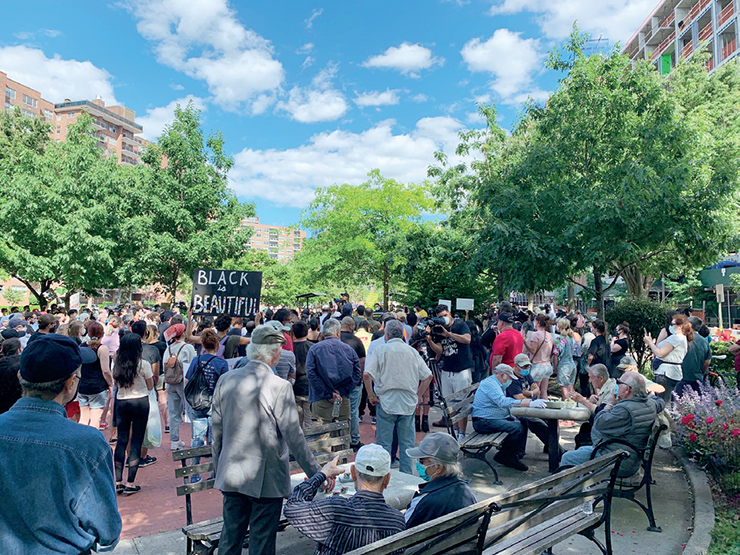 In a city of neighborhoods, the small park in the commercial center serves as a town square where people gather and rally around ideas. MacDonald Park fulfills this role in Forest Hills, as the site of a rally against anti-Semitism six months ago and this past Sunday for Black Lives Matter, the slogan and movement that emerged in the aftermath of highly publicized incidents of police violence against African American individuals.