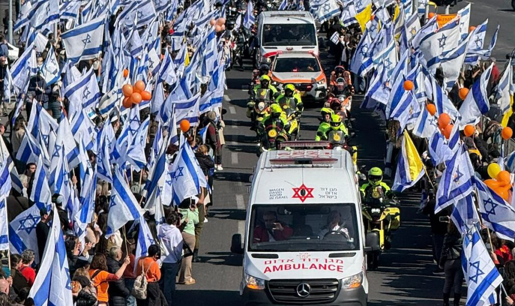 Thousands of Israelis gathered to mourn the Bibas family as their funeral procession traveled nearly 40 miles from Rishon Lezion to Tsoher Regional Cemetery near Kibbutz Nir Oz. Shiri Bibas, 32, and her sons, Ariel, 4, and Kfir, 9 months, kidnapped by Hamas on October 7, 2023, were killed in captivity in Gaza. Mourners lined the streets with Israeli flags and orange balloons, honoring the red-haired boys who became symbols of the hostage crisis. The private burial followed a livestreamed eulogy, with crowds also assembling in Tel Aviv’s Hostage Square to watch. The bodies were returned last week under a ceasefire deal, alongside Oded Lifshitz, an 83-year-old peace activist also murdered in captivity.