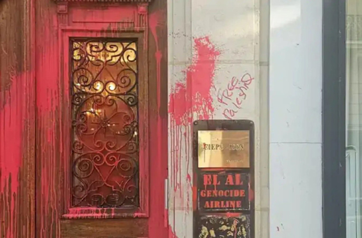 El Al’s Paris offices were vandalized with graffiti reading “El Al genocide airline” on doors and walls. The incident, described by the airline as a severe anti-Israel act, occurred when the building was empty, with no harm to employees. El Al evacuated all personnel from Paris, and a foreign company now manages terminal operations. French authorities are investigating the vandalism, with no suspects identified.