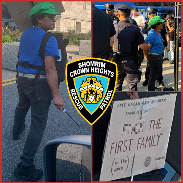 A visibly Jewish man’s car tires were slashed near Grand Army Plaza during a protest. The suspect, carrying anti-Israel signs and two knives, was arrested through coordinated efforts by Crown Heights Shomrim and the NYPD. The incident occurred as the man drove past the protest. No additional details on the suspect’s identity or specific charges were released. The arrest followed swift community and law enforcement response.