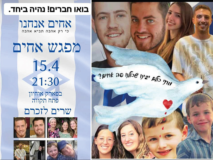 Much effort continues to be placed with this goal in mind. The mother of Hillel and Yagel Yaniv requested that, in addition to the shlissel challah (challah made in the shape of a key for the Shabbos immediately following Pesach), this year we should also make a challah in the shape of a heart, challat ha’achdut, and give them out to our neighbors for the sake of unity. Meetings continue to be held to bridge the gaps between the camps and increase love between one another.