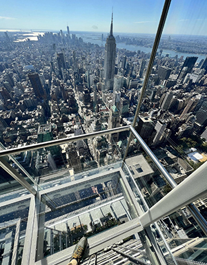 The glassy skyscraper towering next to Grand Central Terminal has the newest observation deck in Manhattan, titled The Summit. To reach it, visitors take a glass elevator with views of the city as they rise to nearly 1,400 feet above 42nd Street. One can stand on a glass floor that juts out of the top floor and see the nearby Empire State Building from a unique angle that nearly rivals its height. Ideal for sunsets.