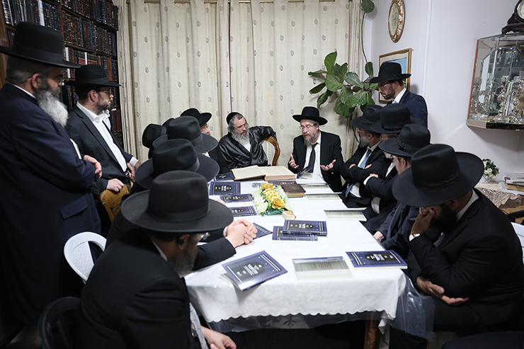 Attendees and speakers at the pesicha given by Rav Dovid Cohen included HaGaon HaRav HaRav Nisson Kaplan, shlita, and Hagaon HaRav Yisroel Yitzchok Zilberman, shlita.